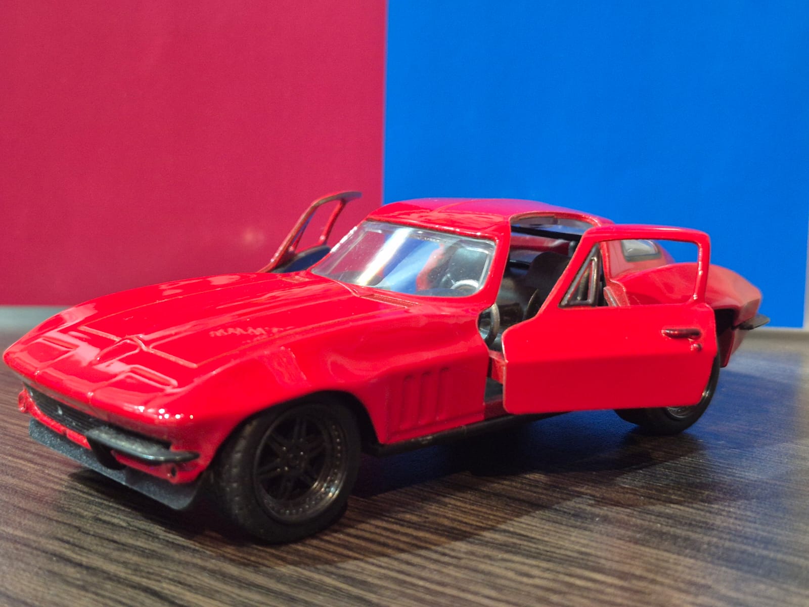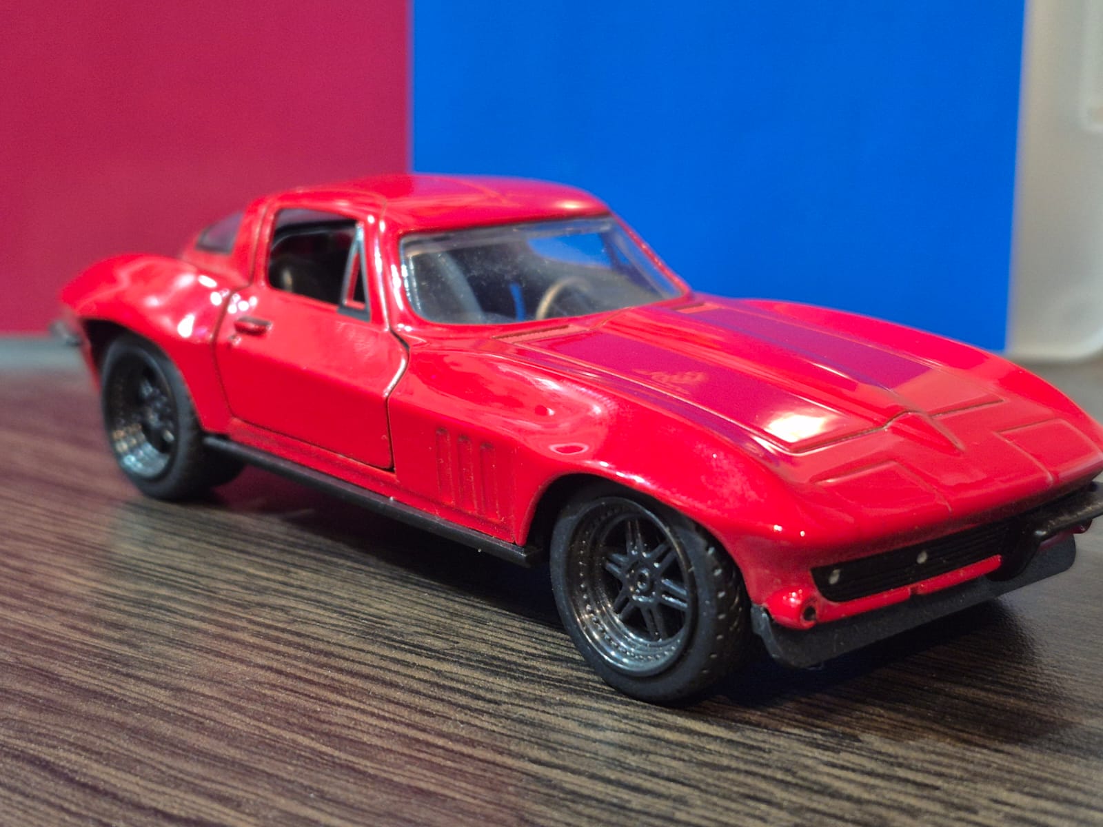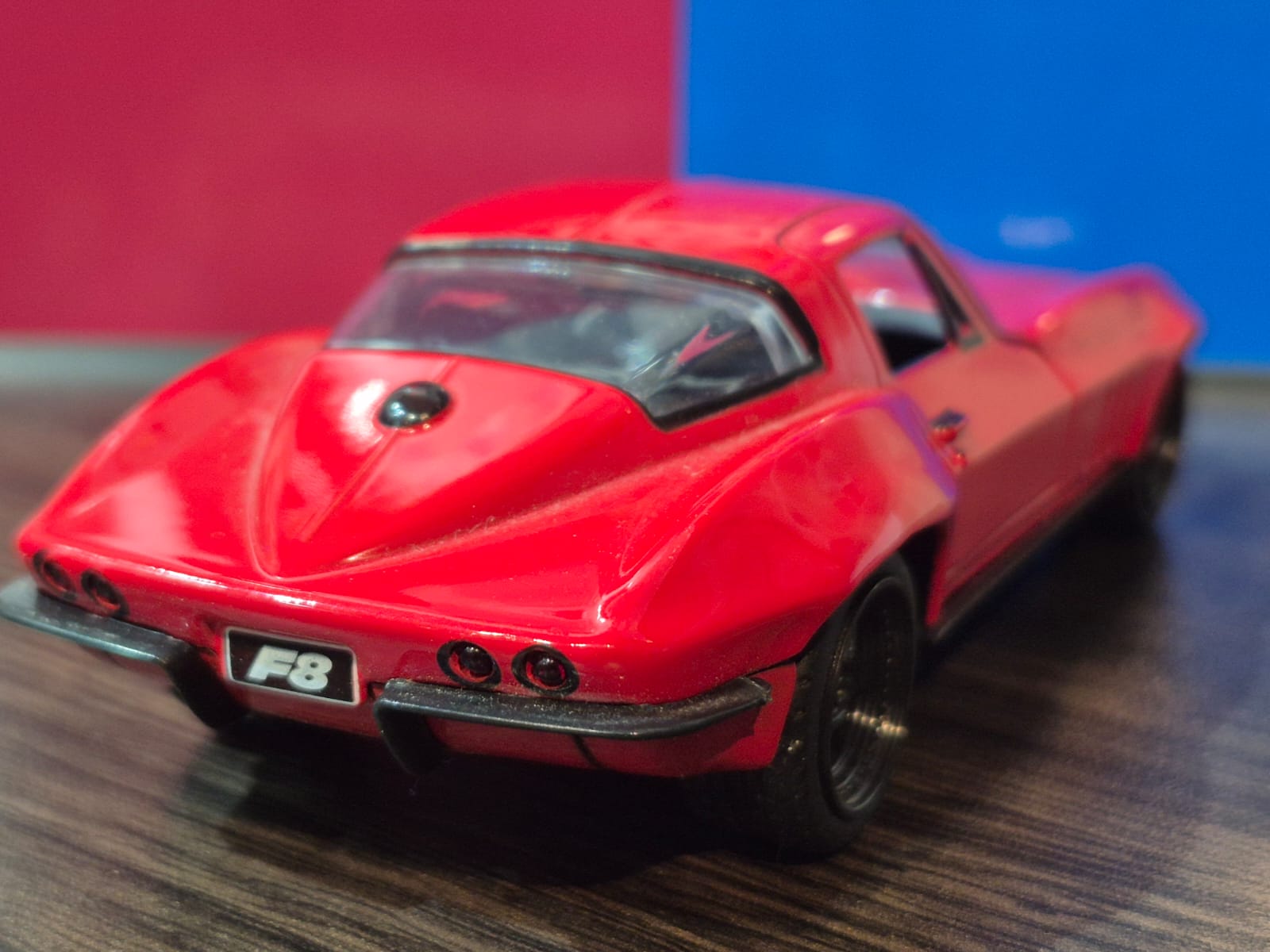 RÉPLICA A ESCALA 1:32 DEL CHEVROLET CORVETTE STINGRAY DE LA SAGA FAST & FURIOUS, CON DISEÑO CLÁSICO, CARROCERÍA ROJA Y DETALLES DEPORTIVOS DE COLECCIÓN.