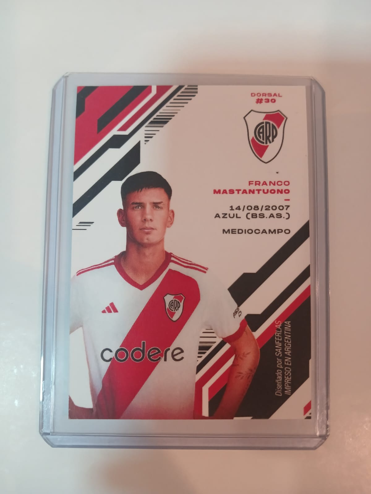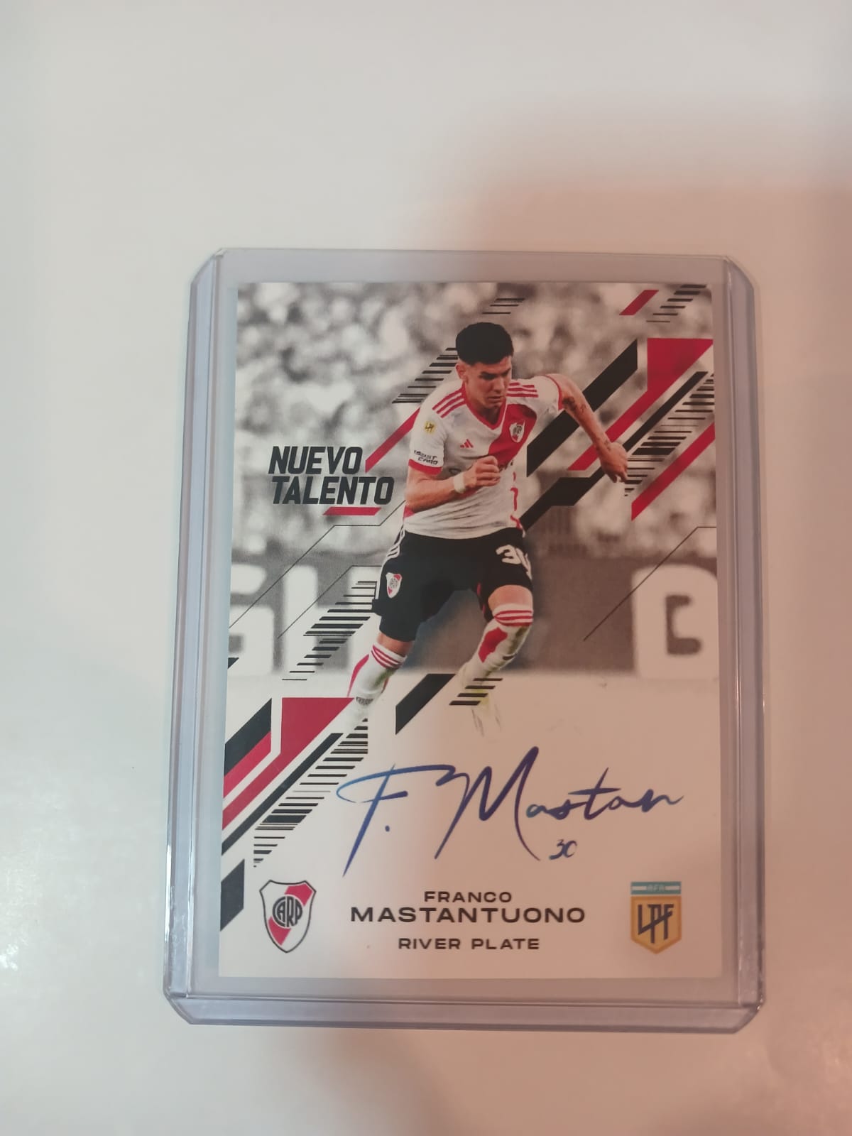 ¡Hazte con una pieza única de la historia de River Plate! Esta carta coleccionable de Franco Mastantuono, firmada, es la oportunidad perfecta para los fanáticos del fútbol y coleccionistas. Representando el futuro de la camiseta millonaria, esta edición especial de “Nuevo Talento” captura la esencia de uno de los jugadores más prometedores del club.