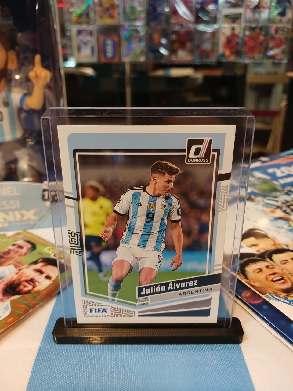 Sumá a tu colección esta carta oficial Donruss FIFA de Julián Álvarez, delantero de la Selección Argentina campeón del mundo.