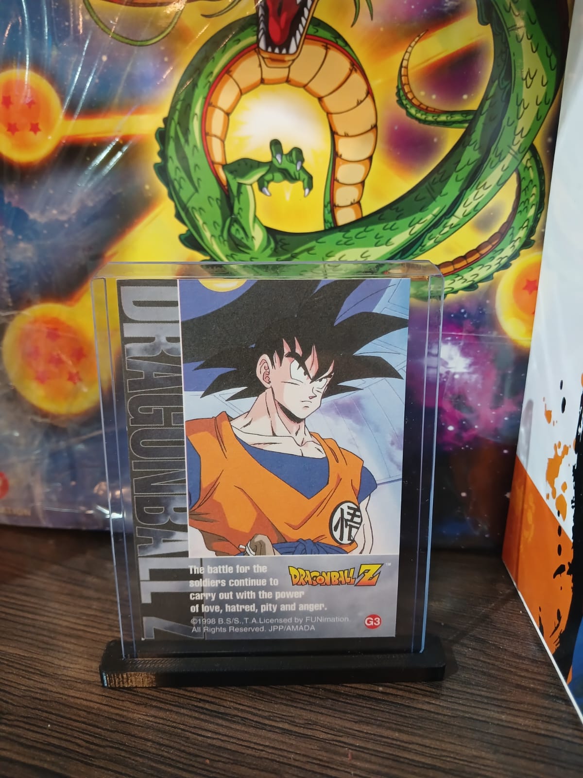 • Tarjeta coleccionable original de Dragon Ball Z con acabado dorado estilo 90s. Pieza vintage ideal para exhibición y coleccionistas.