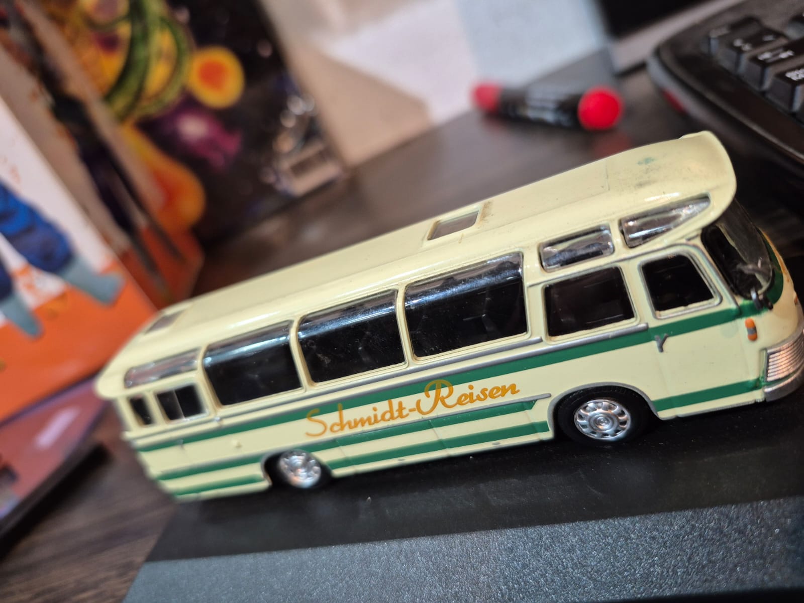 RÉPLICA A ESCALA 1:32 DEL CLÁSICO BUS NEOPLAN ALEMÁN, CON DETALLES FIELES Y TERMINACIÓN DE COLECCIÓN, IDEAL PARA AMANTES DEL TRANSPORTE.
