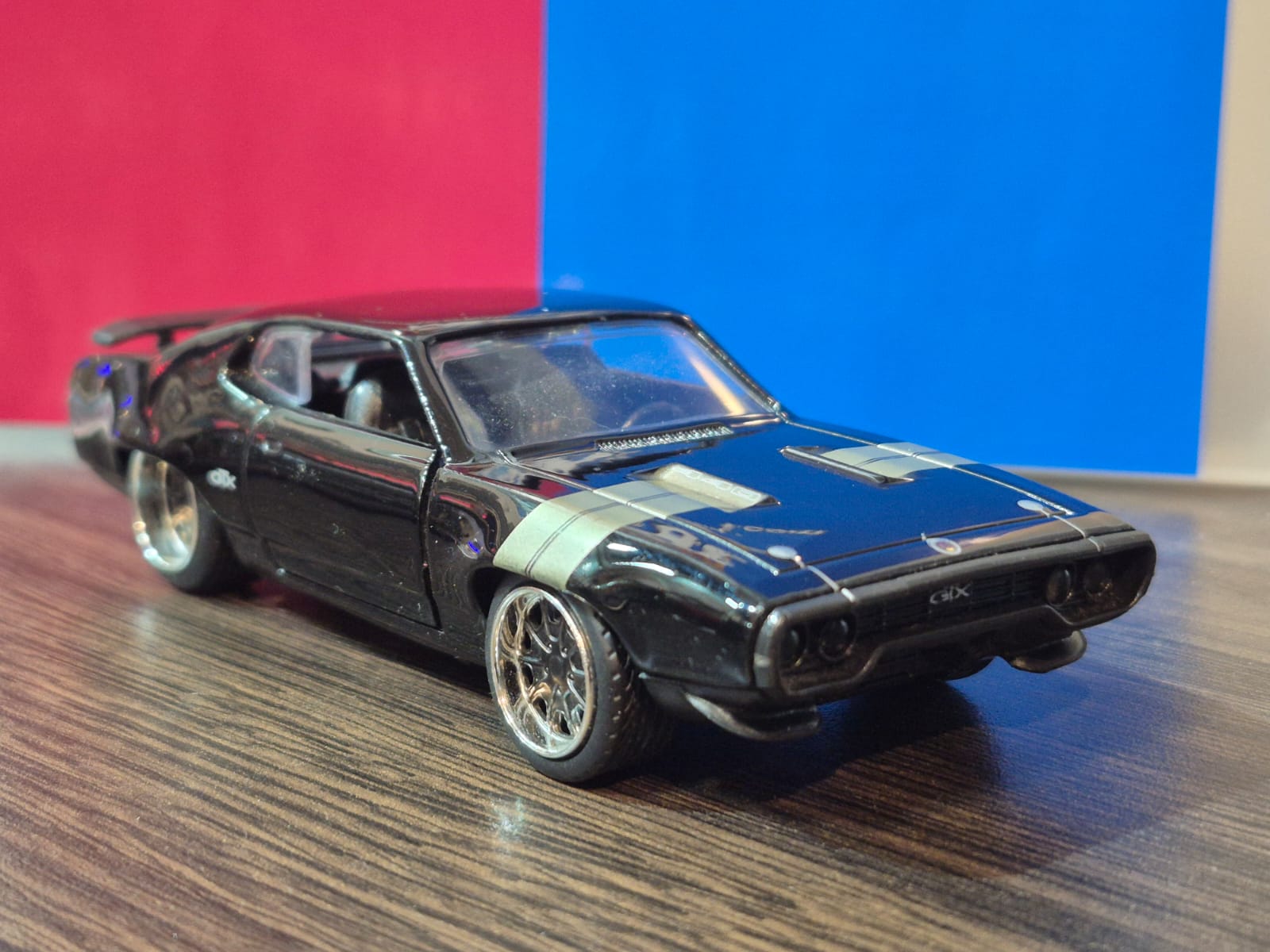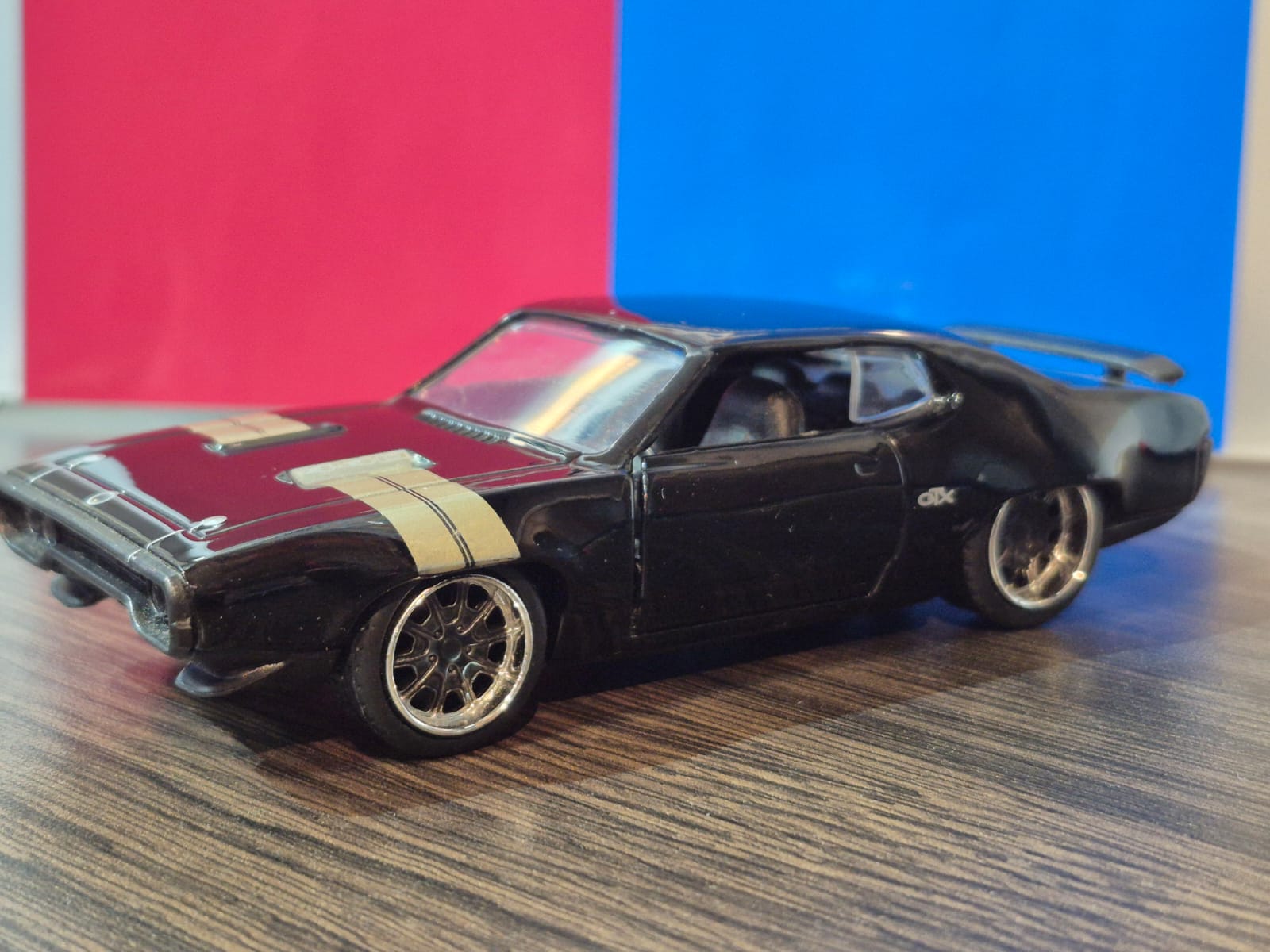 RÉPLICA A ESCALA 1:32 DEL ICÓNICO PLYMOUTH GTX EN COLOR NEGRO, CON DETALLES FIELES Y ACABADO PREMIUM PARA COLECCIONISTAS.